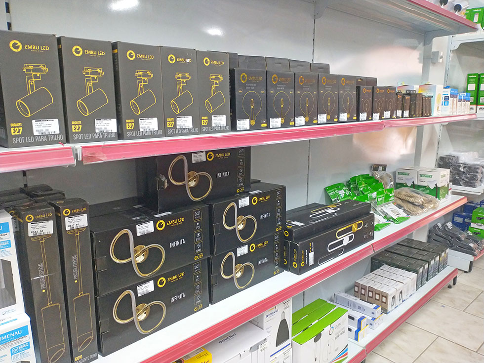 Trabalhamos com uma ampla linha de produtos — fios, lâmpadas LED, disjuntores, ferramentas, alarmes, interfones, chuveiros, torneiras e muito mais.